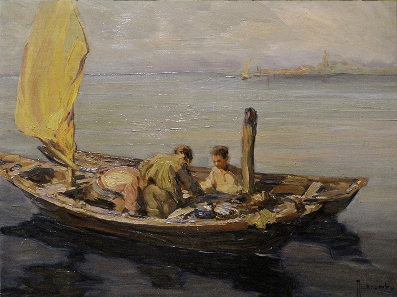 La Galleria d’Arte di Ferruzzi e quella dei fratelli De Marco, ambedue attive nella zona di San Vio, espongono in contemporanea una selezione di opere di alcuni protagonisti del Novecento con il lodevole proposito di sollecitare un nuovo interesse per una non più derogabile rivalutazione di queste figure che avevano del resto contrassegnato la storia della pittura veneziana di quel tempo ma che, oggi, è stata in gran parte dimenticata o emarginata, se non addirittura – come è accaduto – sfrattata dalle locali istituzioni museali e reclusa, purtroppo, in una sede-deposito in terraferma Un destino tanto ingiustificato quanto inspiegabile ha colpito negli ultimi decenni molti di quegli esponenti, specie di coloro che pure hanno validamente operato praticando un linguaggio – non poteva essere altrimenti – di impronta ancora figurativa ma non meno però innovatrice in quanto parimenti aggiornata sulle tendenze allora maggiormente circolanti in Italia e in Europa, dall’impressionismo al cubismo, dal fauvismo all’espressionismo.